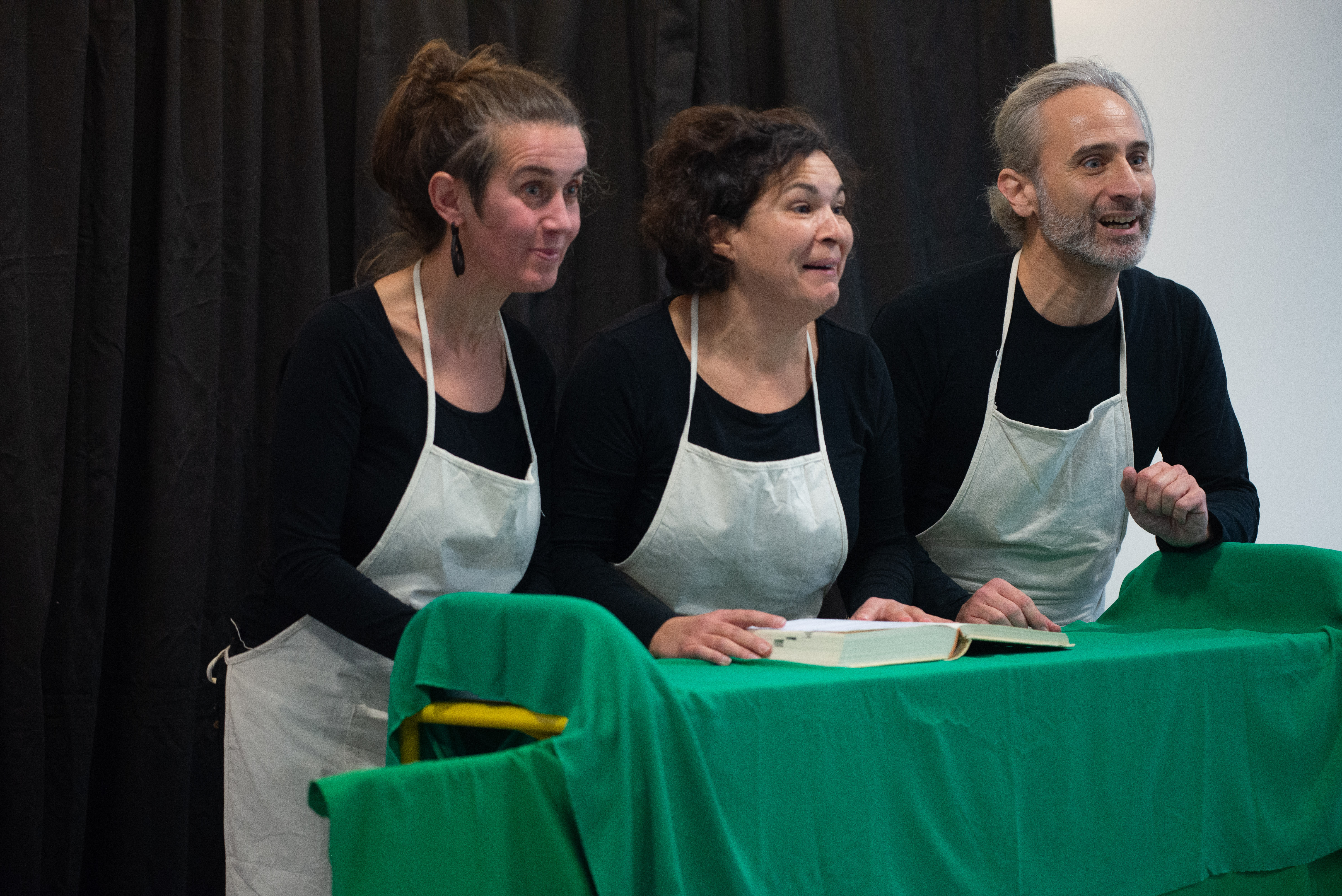 «A table !». Marie-Paule Bonnemason, Salomon Ellia et Elise Esnault ont présenté aux lycéens les premières étapes de leur création autour du thème de la gourmandise. Durant deux mois, les élèves de trois classes de CAP et BEP service ont expérimenté le chant, le travail rythmique et le théâtre pour présenter une ode à la gastronomie et à la gourmandise, lors de la restitution de ce projet d’action culturelle le jeudi 8 janvier.
