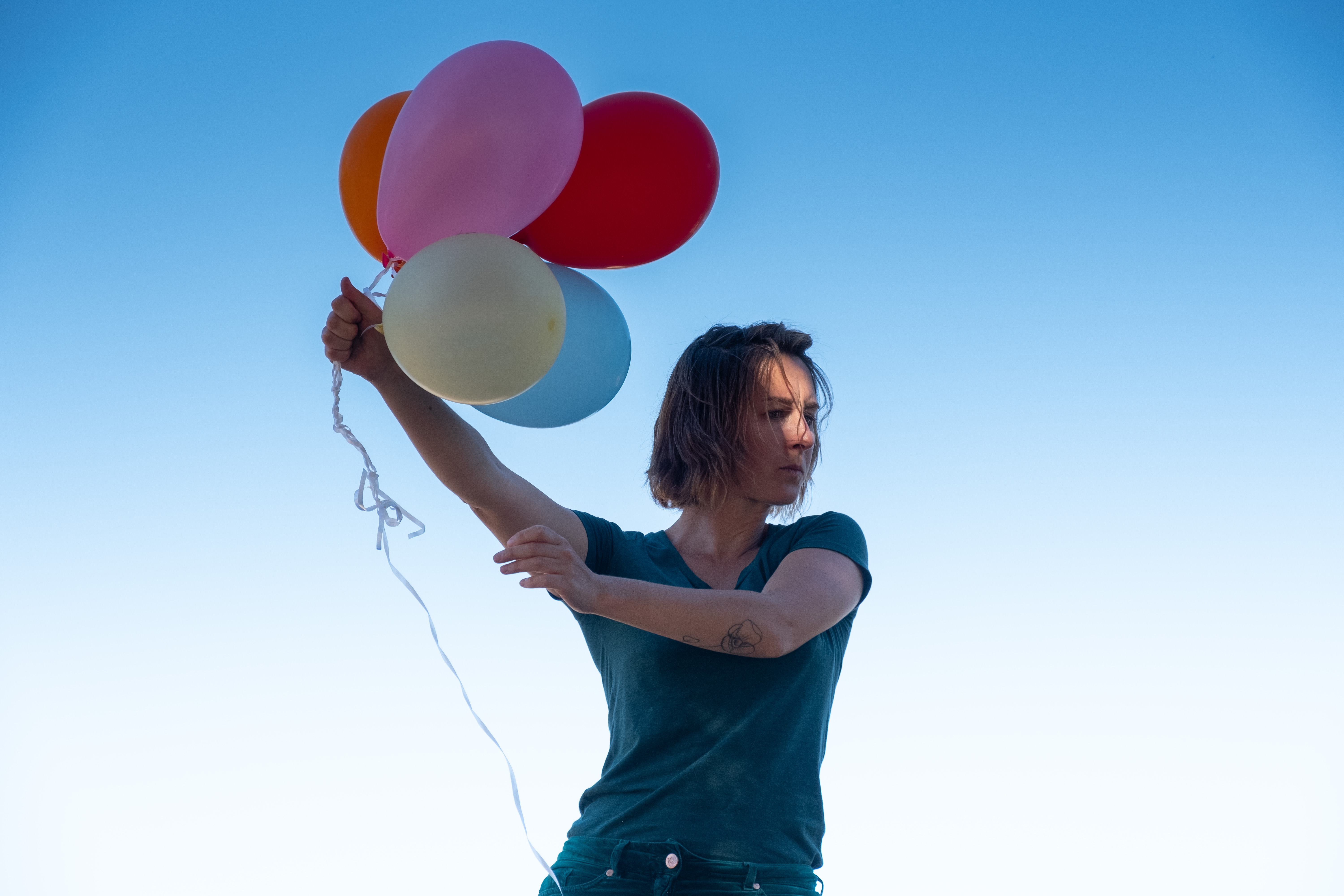 Elle crée les solos pour l’espace public : Voiture Bleue – stationnements gesticulés, solo pour une danseuse et une voiture et Nez, solo masqué.