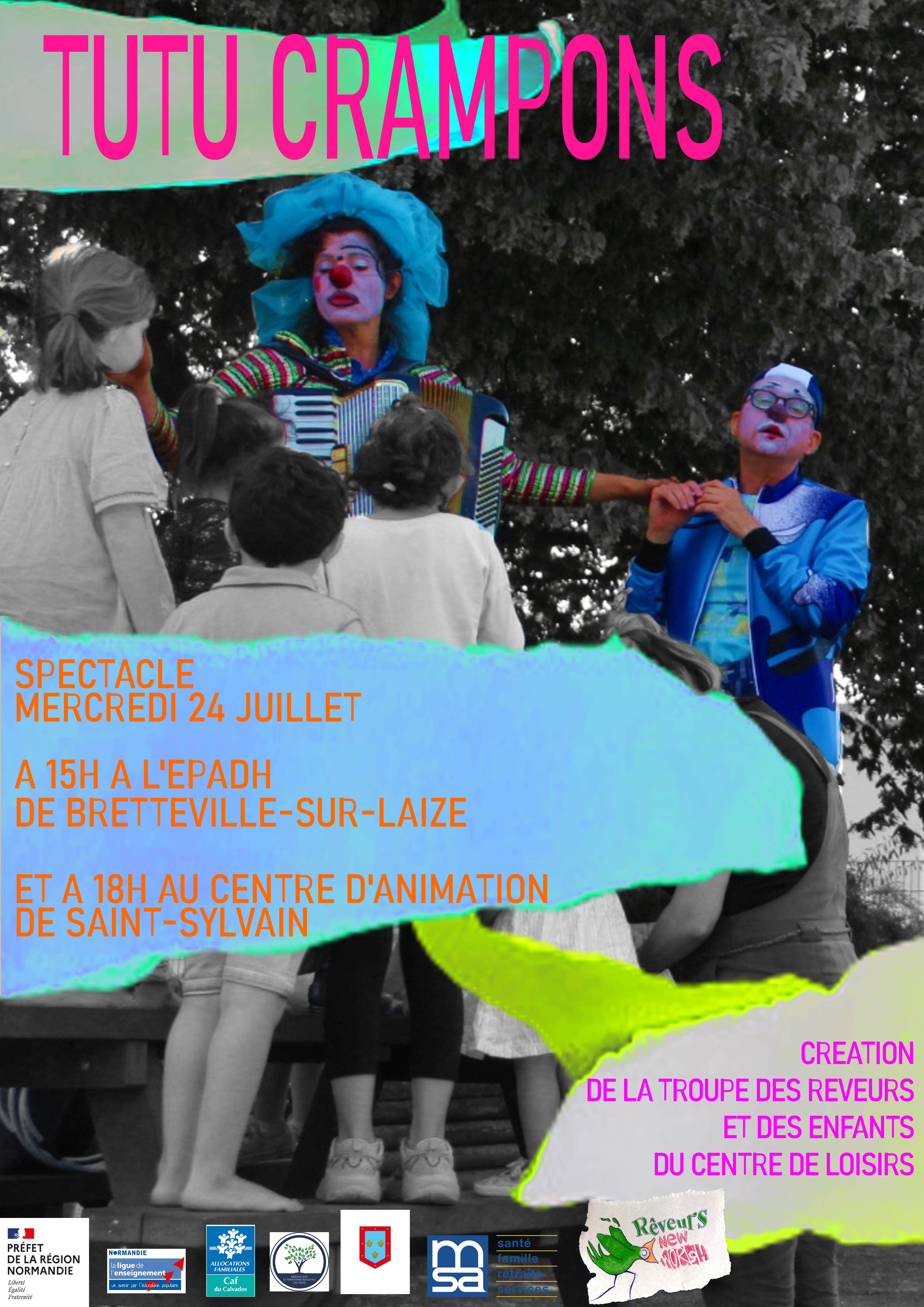 « Tutu Crampons » a été joué dans les jardins de l’EHPAD de Bretteville sur Laize pour les résidents et personnels de l’établissement. Puis au centre de loisirs, une représentation en extérieur a eu lieu devant un public composé de parents, élus de Saint Sylvain et professionnels de Ligue de l’Enseignement.
